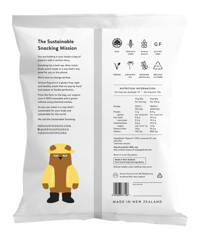 INGREDIENTS: Popcorn* (69%), coconut oil*, sea salt