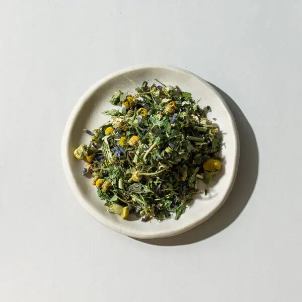 Restful Tea is an award-winning herbal tisane imbued with calming chamomile, restoring lemon notes and comforting aromatic lavender. This naturopathic formulation has traditional benefits and plant compounds that are restorative and sedative which may naturally instill deep relaxation and support quality sleep, soothe muscular tension and alleviate anxiety.