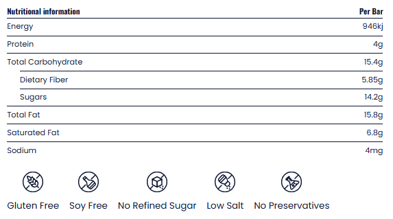 Strawberry & Cranberry: ALMONDS, Dates, Organic Coconut, Organic Rice Malt Syrup, Dried Cranberries, Organic Coconut Oil,